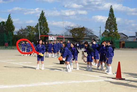 恒例のクラブ対抗リレーのパフォーマンス部門でのソフトテニス部 |