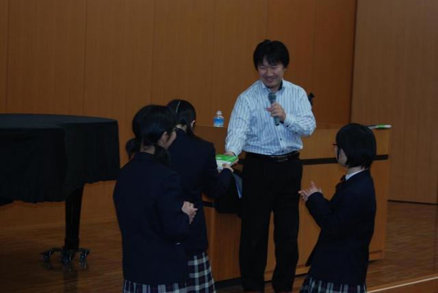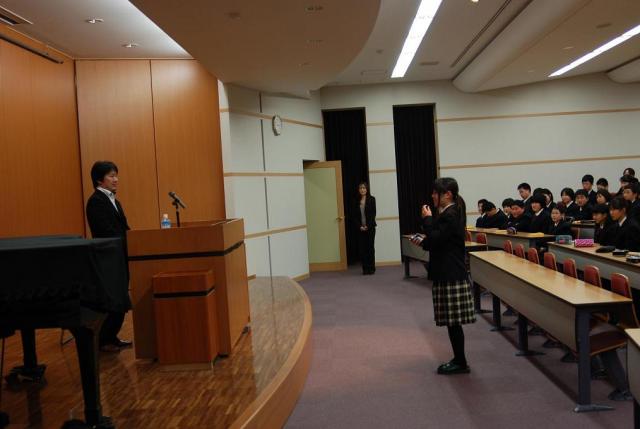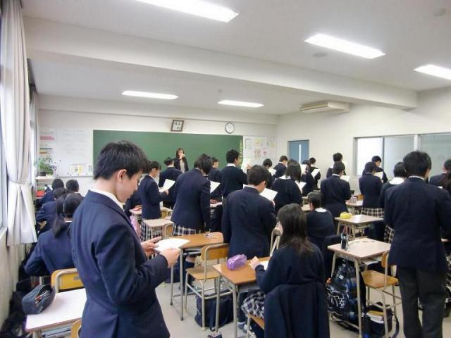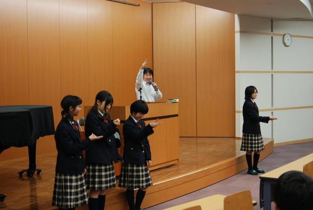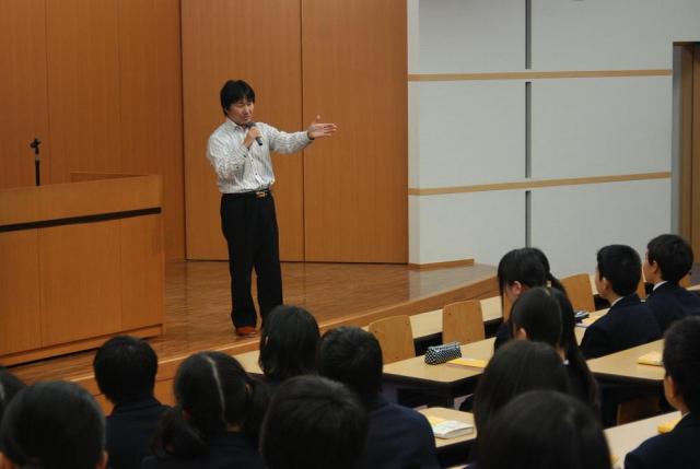 2月14日(月)、灘中校英語科教諭、木村達哉先生に来校していただきました。中1Cの英語の授業見学(授業担当:英語科教諭 田中寿和)をしていただいたあと、1年生の生徒に対して「どうすれば成績が最終的に伸びるのか」「本番で強くなるためにはメンタル面でどういう心持ちでいなくてはならないのか」ということについて、楽しくわかりやすく講演していただきました。お話を聴きながら、学年末試験を2週間後に控えた生徒たちのモチベーションがぐっと上がっていくのが手に取るようにわかりました。すばらしい機会を持つことができ、大雪の中、遠路はるばる三重までお越しいただいた木村先生に深く感謝しております。