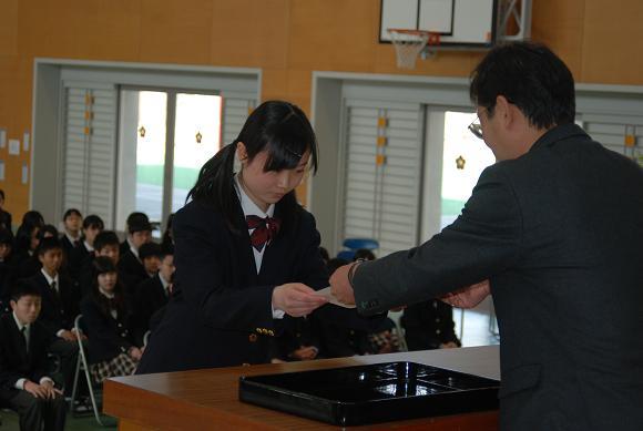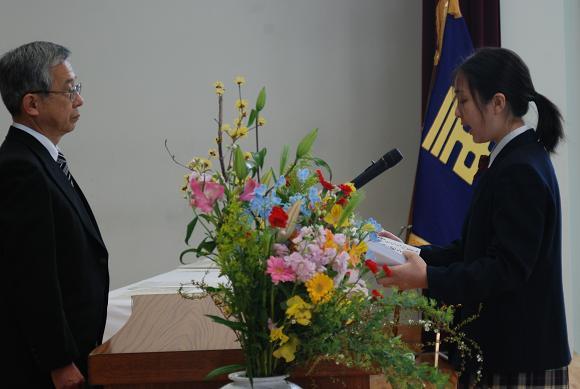 終了後には、3年生による感謝をこめての合唱があり、今年は「時の旅人」を歌いました。その後、2年生による合唱「With You Smile」に送られて退場しました。