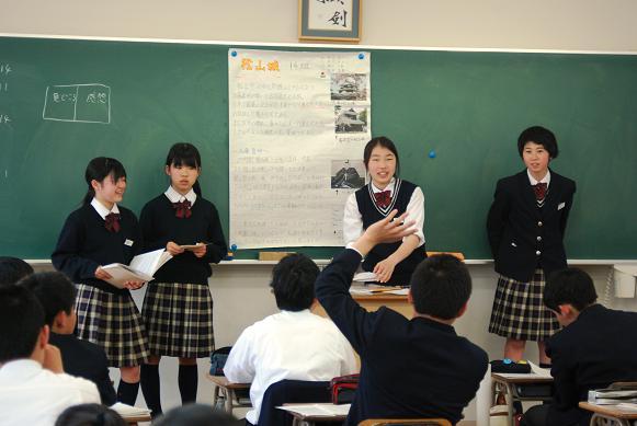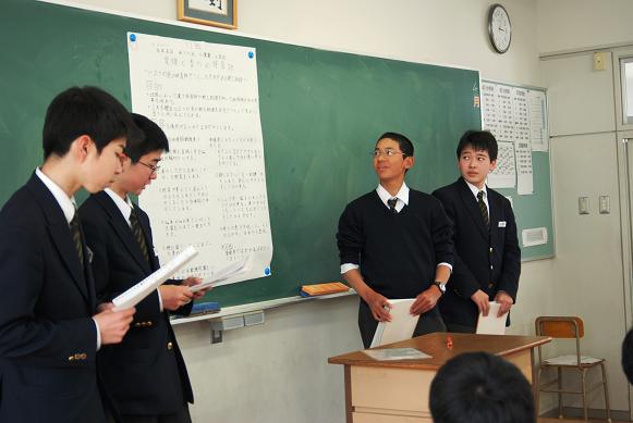 4月21日(木) 3年生で6月初旬に実施する研修旅行の事前研究発表会がありました。クラスの枠を取り払って構成された32班が、それぞれ選んだテーマで研究した結果を発表しました。これは事前学習の起点となるもので、これを機会に学習をさらに深め、充実した研修旅行を目指します。