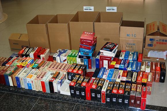 また4月25日には、岩手大学から要請を受けた三重高校出身の教員に協力する形で、間もなく授業が始まる岩手県陸前高田市の高田高校に辞書を送りました。中高の教員・生徒に呼びかけ、国語・英語の辞書131冊が集まりました。ボランティアの生徒が分類、箱詰めし、メッセージを添えて送りました。