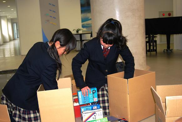 三重中学・高等学校では生徒会が中心となって、東日本大震災の被災地への支援を行っています。これまでの義捐金の募金活動に加え、被災地の学校に教材を送る活動を始めました。