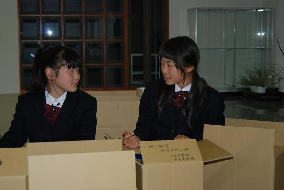 4月22日には、今春閉校となった三重中京大学短期大学部から三重中学が譲り受けた実験器具を、創作科学部4年生の部員と中学前期生徒会役員が協力して、整理・箱詰めし、要請のあった宮城県の気仙沼中学校に送りました。