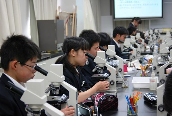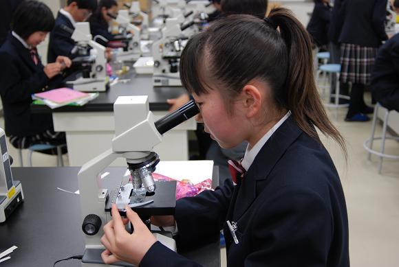 顕微鏡を使って