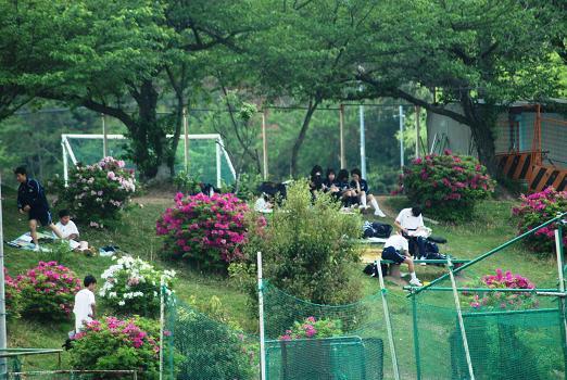 ![]() ツツジが美しい野球場の斜面で |