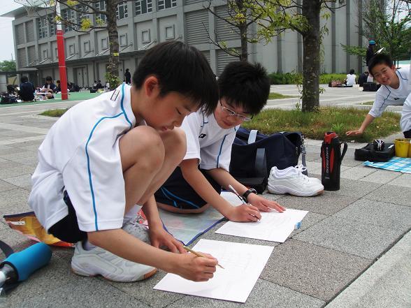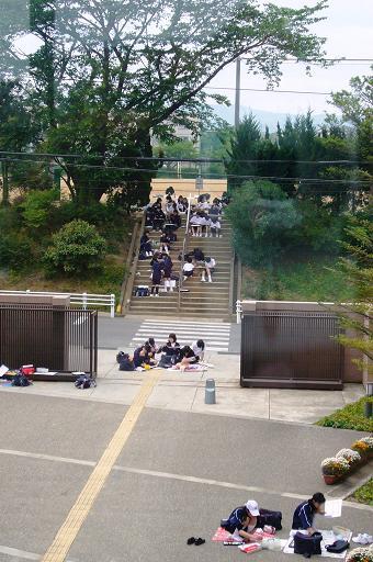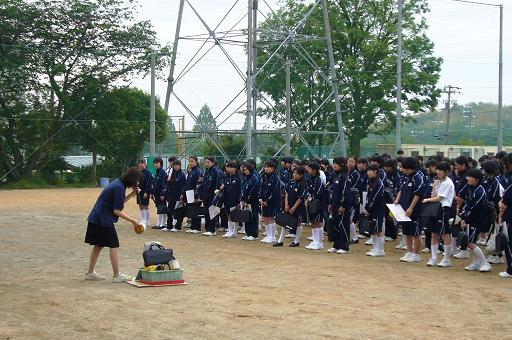 ![]() まずグラウンドに集合。美術の先生から諸注意。 |