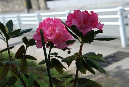 中学グラウンドの校舎側の土手のシャクナゲも可憐な花を咲かせました。入学式に校長が新入生のクラスに植物を贈るのが恒例となっていますが、今の3年生はシャクナゲで、2年に進級するのを機に鉢から移植したものです。