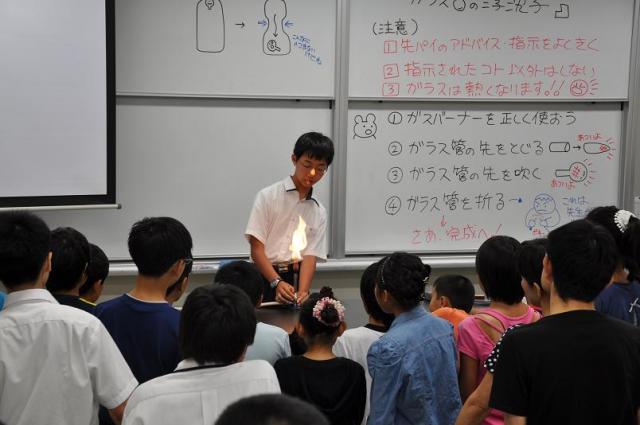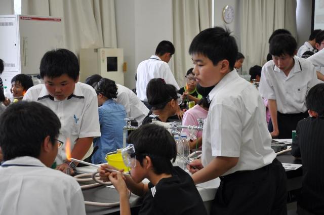 申し込みは170名を超え、特に理科と家庭に申し込みが集中し、この企画の人気の高さ、小学生の皆さんの理科や家庭への関心の高さが伺えます。参加した児童の皆さんは小学校では味わえない本格的な実験や実習に時間を忘れて楽しんだようです。