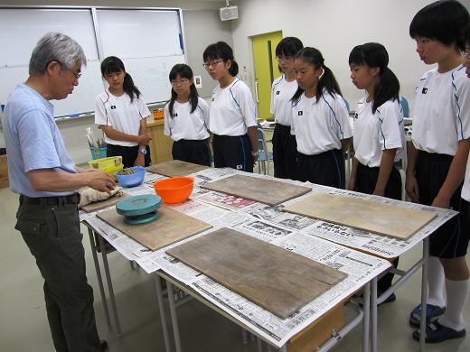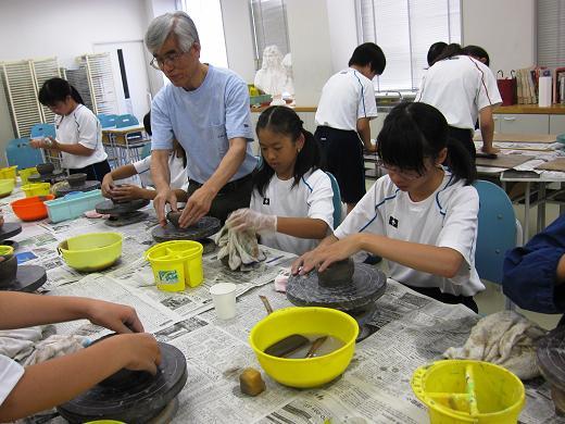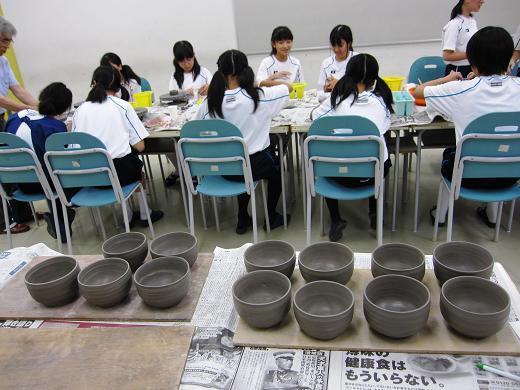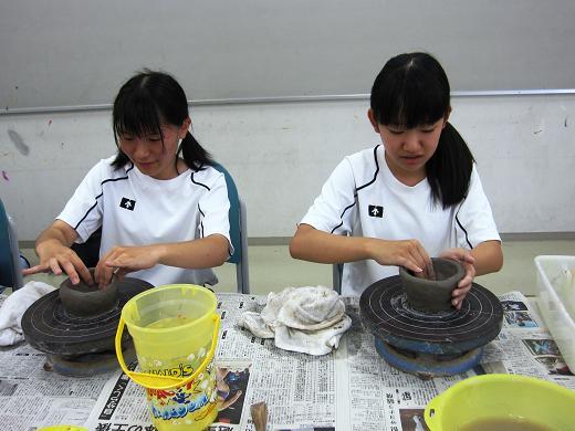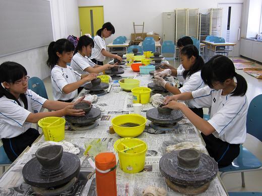 7月16日(土)、茶道部が西田多実雄先生のご指導で、抹茶茶碗作りに挑戦しました。茶道に様々な面から取り組んでみようという、クラブ活動版「総合学習」のような試みの一環で、一昨年から「茶碗作り-第1回」「和菓子作り」「茶杓作り」「落雁作り」と続くものです。 9月に行われる学園祭では、ここで作った茶碗を使って茶会が行われる予定です。