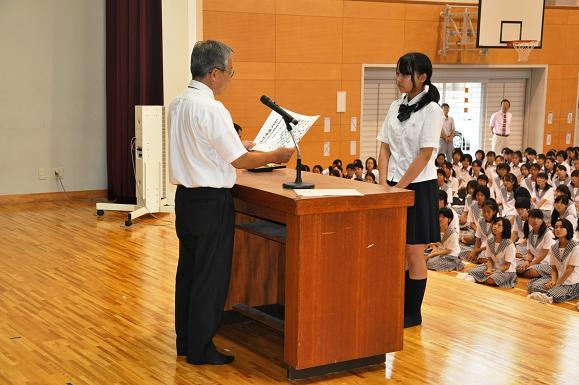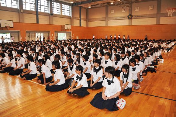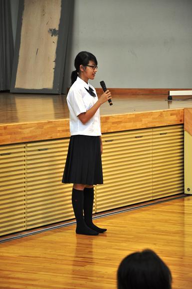 9月1日(木)、9月の月例朝礼が行われました。校長訓話のあと、この日から高校部5年生で学ぶことになったフィンランドからのAFS留学生、Minh Thu Maria Makkonenさんが紹介されました。 そのあと、福島県で行われた全国高等学校総合文化祭の弁論の部で優良賞に輝いた榊原萌さん(5年生)の伝達表彰がありました。