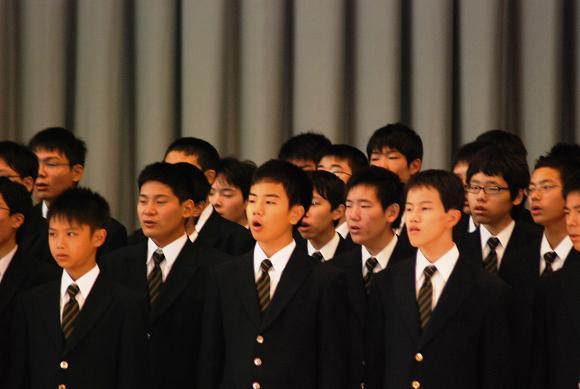 3年生は中間試験が終わった10月21日から全員による本格的な練習を開始。10月28日に1・2年生を招き、校内発表を行い、伝統は2年生に引き継がれました。 発表当日は朝学校で練習をし、午後の発表に備えました。 音楽会では三重中生はアナウンスを担当し、他校の生徒と一緒に会の運営に携わりました。