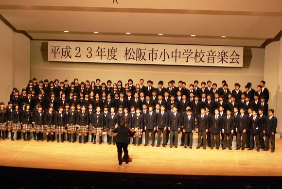 10月30日(日)、恒例の「松阪市小中学校音楽会」があり、三重中学校は3年生全員による合唱を披露しました。無伴奏の「見上げてごらん夜の星を」とNHK合唱コンクールの課題曲「証(あかし)」の2曲を演奏会のしめくくりとして演奏しました。また、音楽部が殿町中学校と合同の「中学生コーラス」で合唱を発表しました。