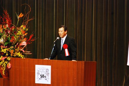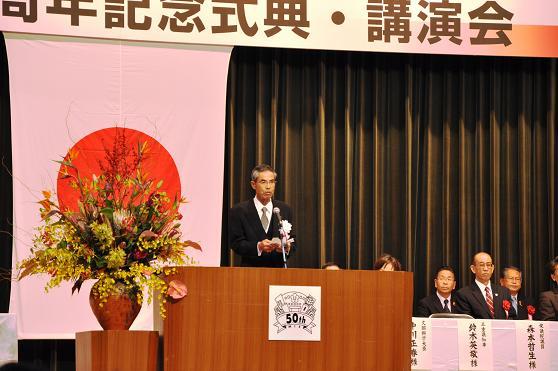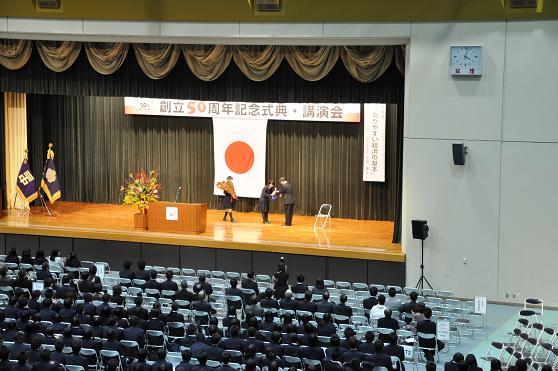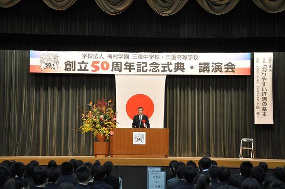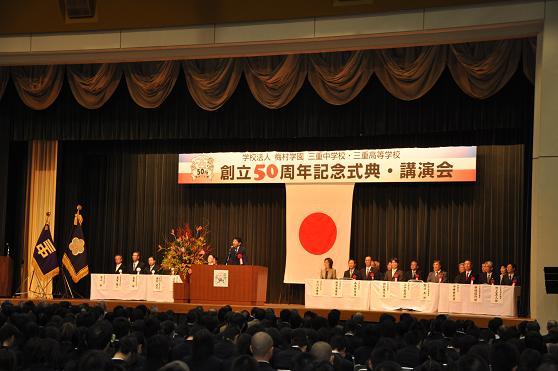 11月26日(土)、三重中学校・三重高等学校創立50周年記念事業のフィナーレを飾る記念式典・記念講演会が中部台の松阪市総合体育館で行われました。また、その後会場を華王殿に移して、祝賀会が行われました。