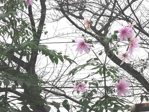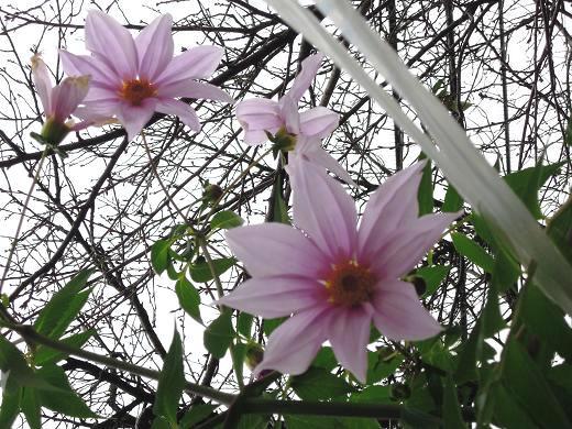 西門脇に植えてある皇帝ダリアが3年目にして初めて花を咲かせました。鉢植えしていたものが3メートルに生長しても2年間花をつけることがなかったのですが、今年は地植えにして、ようやく花を付けました。11月下旬に待望の薄紫の花が開きました。