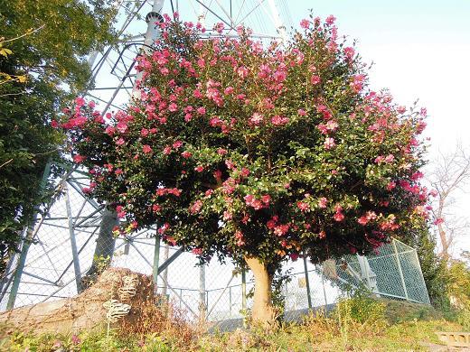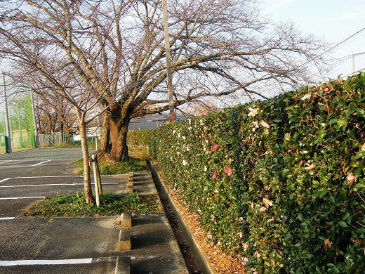 グラウンド隅の山茶花が満開です。第4駐車場を囲む山茶花の生垣も紅白の花を咲かせています。この生垣はかつてここにあった「望湊館」で過ごした三重高校29期卒業生(平成4年卒)が卒業記念に植樹したものです。