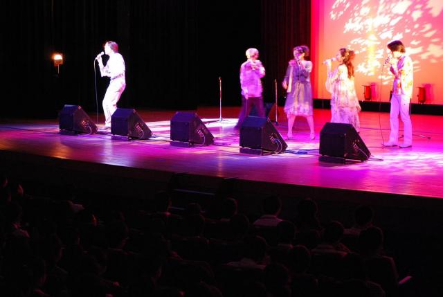 午後からは場所を松阪市民文化会館に移し,視聴覚行事が行われました。今回はアカペラコーラスグループの「トライトーン」のコンサートでした。美しいハーモニーや,楽器の音,鳥の鳴き声,波の音など,声とは思えないリアルさに感動しました。