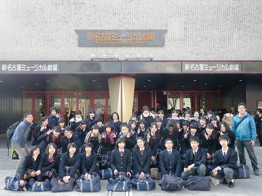 12月29日(木)、1年生から3年生までの希望者41名が新名古屋ミュージカル劇場で劇団四季によるミュージカル『Wicked』を鑑賞しました。昨年の『オペラ座の怪人』に続く企画で、12月15日(木)には劇団四季のスタッフに来ていただき、鑑賞にあたっての事前指導を行いました。 約3時間に及ぶ大作でしたが、複雑なプロットと飽きさせない展開に、時間が経つのを忘れるほど魅了されました。