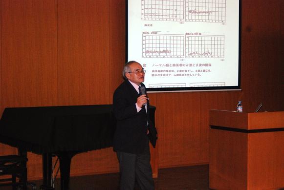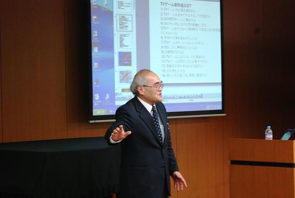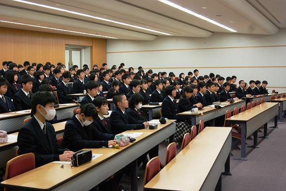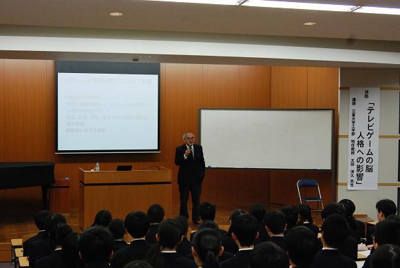 1月19日(木)、進路学習の一環として三重大学の先生による出前授業がありました。大学院工学研究科から太田清久教授をお招きし、『テレビゲームの脳-人格への影響』というテーマで講義をしていただきました。テレビゲームの脳への影響が科学的に説明され、脱線もしながらの楽しい講義となりました。
