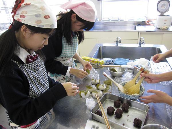 2月18日(土)、茶道部が恒例の和菓子づくりに挑戦しました。今回は、「桜餅(関西風)」と「あん焼き」の2種類。家庭科の先生の指導のもと、1年生から4年生までの19名が参加しました。和菓子は、作るのにとても時間がかかります。手間暇かけて作ったお菓子は、出来上がったときの喜びもひとしおです。出来上がった桜餅の桜色は各班で少しずつ違いましたが、それもまた楽しい一面でした。作品は職員室の先生方にも食べていただきましたが、とても好評でした。