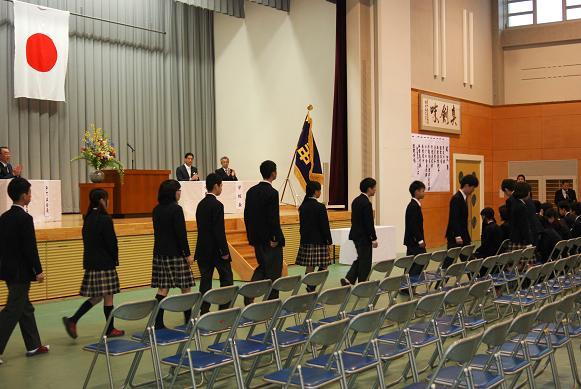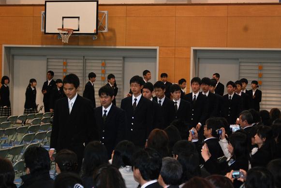 ![]() 会場の拍手の中、卒業生が入場 |