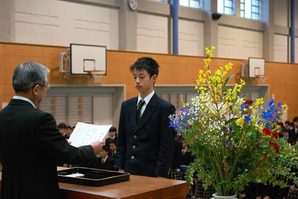 3月17日(土)、第48回の卒業式が、三重中学校伝統の厳粛な雰囲気の中で行われました。6年制ですから高校でも同じ仲間と学ぶことになるのですが、新たな出発の節目として欲しいとの思いを込めて行われます。卒業生代表の「決意のことば」がこの儀式のスピリットそのものとなっていますが、今年も高校部での活躍を予期させる素晴らしいものでした。