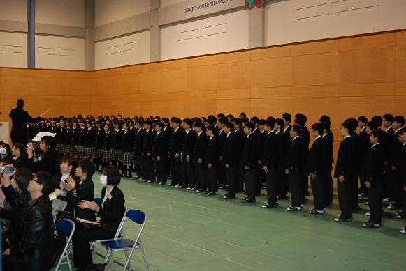 ![]() 2年生が合唱で卒業生を送ります |