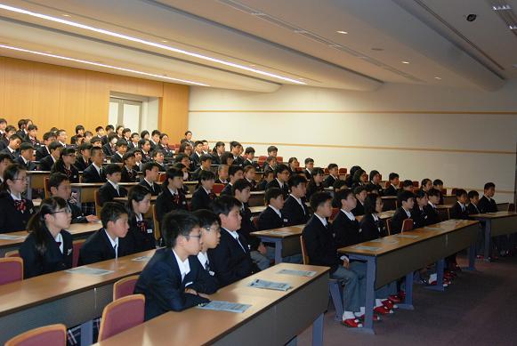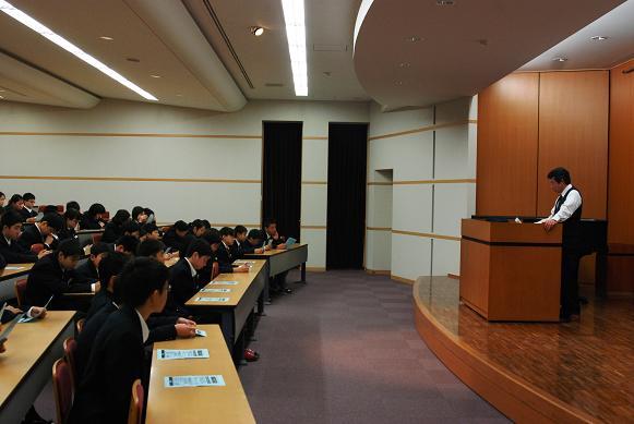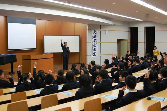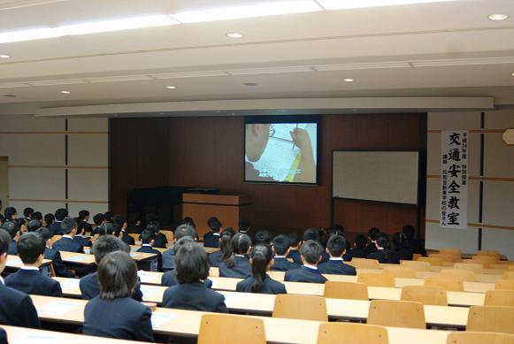 4月20日(金)、松和自動車学校の指導員の方をお招きし、1年生対象の「交通安全教室」が行われました。毎年自転車通学が始まったばかりのこの時期に、自転車通行のルールやマナーを中心に学びます。 映像を見たあと、指導員の方に具体的な説明をしていただきました。
