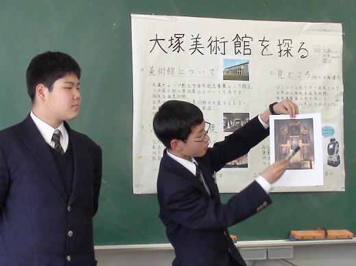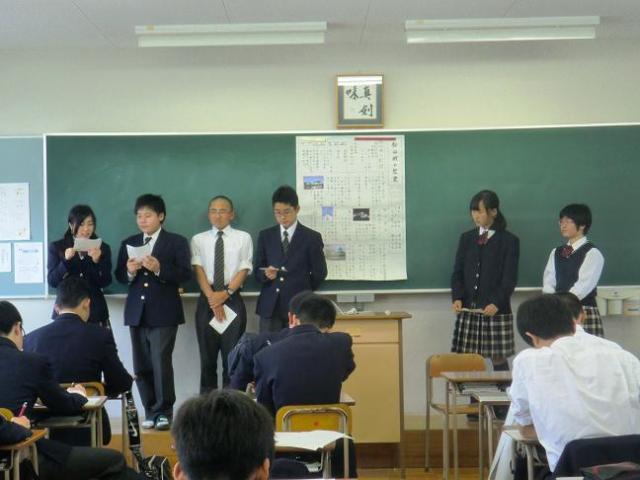3年生は6月上旬に中国・四国地方に研修旅行に行きますが、その事前研究発表会が4月23日(月)に行われました。学年が31班に分かれ、それぞれテーマを決めて研究してきましたが、今日はテーマ別に教室に分かれ、その成果を発表しました。 研修旅行はこの成果を自分たちの目で確かめる旅となります。楽しみです。