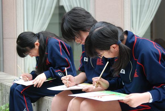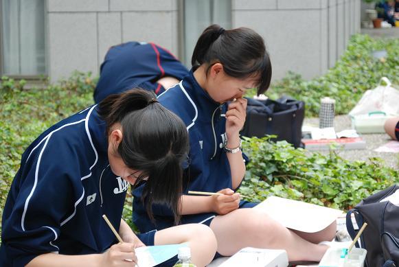 5月8日(火)、恒例の全校生徒による写生大会が行なわれました。少し熱いくらいの気候でしたが、晴天に恵まれ、一日かけて作品を作り上げました。今年は『いつもの学校から風景を切り取る』というテーマで、日常慣れ親しんだ風景を新たなアングルから見つめ、発見をし、それを表現するという経験をしました。 作品は学園祭で展示される予定です。