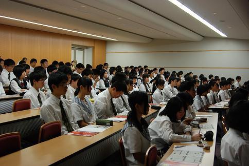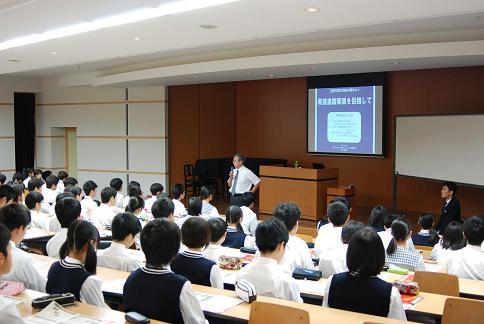 9月25日(火)、3年生で進路講演会がありました。今年はベネッセコーポレーションから小野恭裕先生をお招きし、『進路希望の実現とその先を見据えて』というテーマで行なわれました。講演はグローバル社会の状況を知り、幅広い視野を持った上で、自分がどういう力を身に付けていくのか考えていこうというところから始まり、中高一貫校のメリットを理解し、六年制における中3生の課題を考えていくことの大切さを学びました。「デキル」中学生になるための様々な工夫を教えていただく貴重な機会となりました。