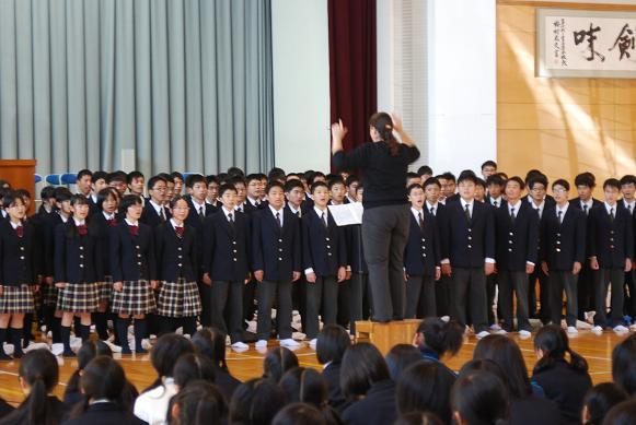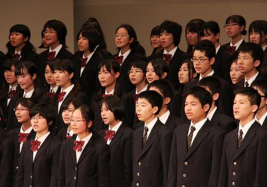 ![]() 音楽部と殿町中学校合唱部との合同発表 |