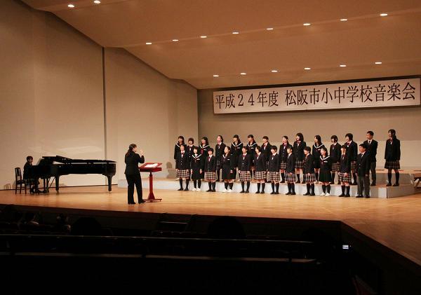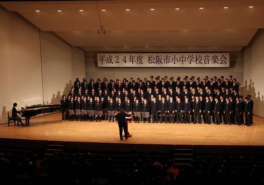 10月27日(土)、恒例の松阪市小中学校音楽会が開催され、三重中学校からは例年どおり音楽部と3年全員が合唱を披露しました。これまで練習してきた成果をかたちに表すことをめざして努力してきましたが、見事目標が達成できました。