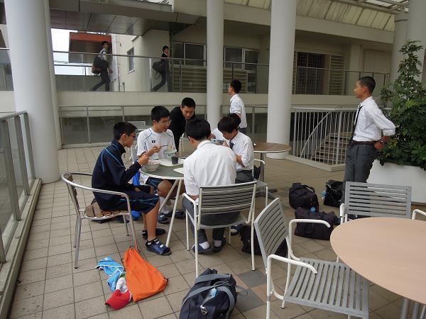 土曜日は中学生もカフェテリア『ディスコランテ』が利用できます。クラブ活動が始まるまでのひとときを、友達とテーブルを囲んで楽しく過ごします。前回は長蛇の列でしたが、6月最初の今日は、ゆったりと食事を楽しむことができました。
