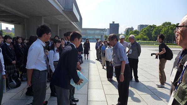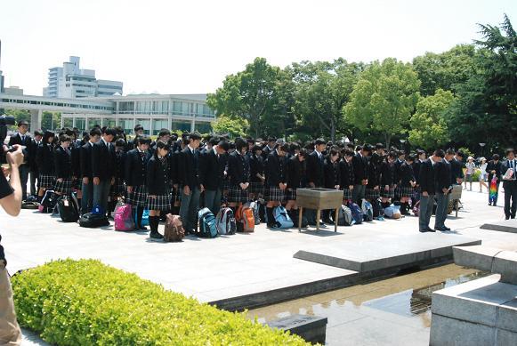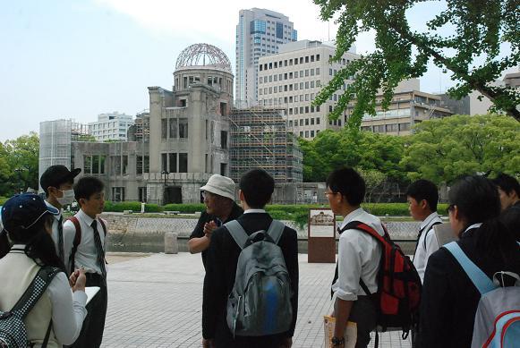 晴天の中、近鉄団体専用列車『楽』で京都へ、そして新幹線で一路広島へ。今年度は原爆投下当時に走っていたい路面電車の車両に乗ることができました。 広島では、平和セレモニーのあと、時間をかけて平和記念資料館を見学。その後ボランティアガイドの方々の案内で慰霊碑を巡り、戦争そして原爆の悲惨さについてより深く学びました。