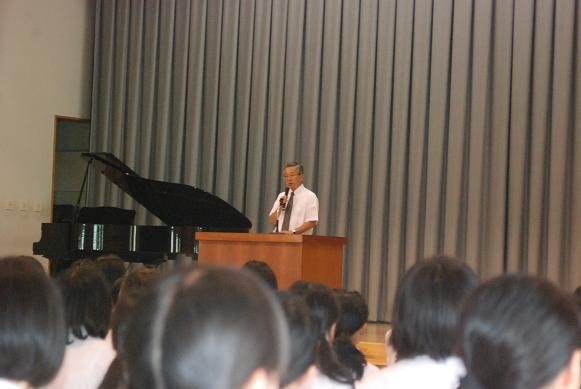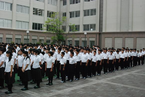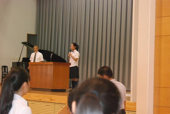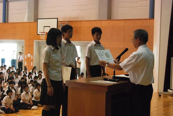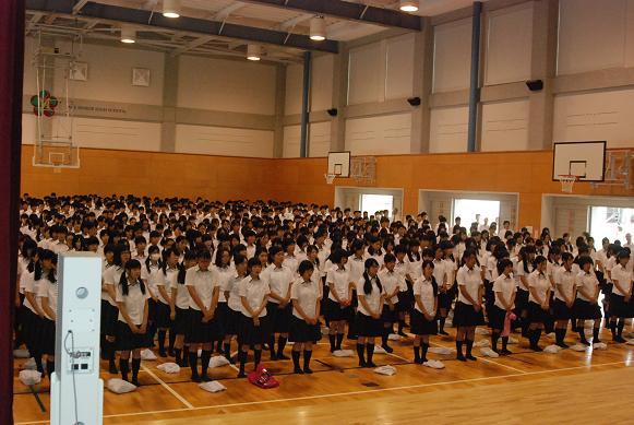 始業式では、今日から4年生の一員として学ぶ中国からの留学生、張 婷婷さんの紹介があり、婷婷さんからも流暢な日本語で挨拶がありました。式後には夏休み中に体育・文化の分野で受賞した生徒の伝達表彰がありました。