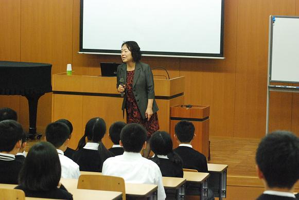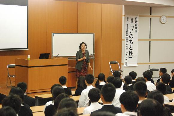 10月31日(木)、1年生で性教育講座『いのちと性』が、済生会松阪総合病院の助産師、山本久代先生をお招きし、行われました。思春期の性への関心という身近な話題から、日々生命の誕生に携わってみえる立場から見たいのちの大切さまで、ユーモアを交えながらお話をいただきました。