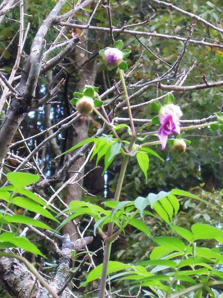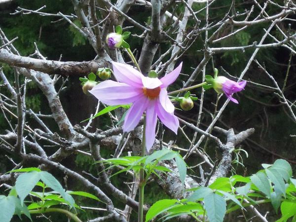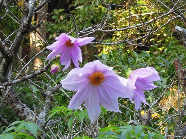 昨年は霜を避けて室内で花を咲かせた学校の皇帝ダリアも、残念ながら今年は台風で倒れ、復活したものの、未だ花を咲かせていません。 しかし、学校の皇帝ダリアの「子」にあたる一本が教員の家の畑で花を咲かせました。