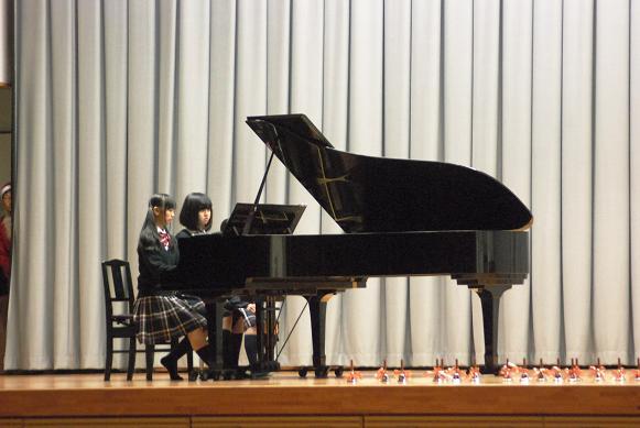 ![]() コンサートの「華」-音楽部のハンドベル演奏 |