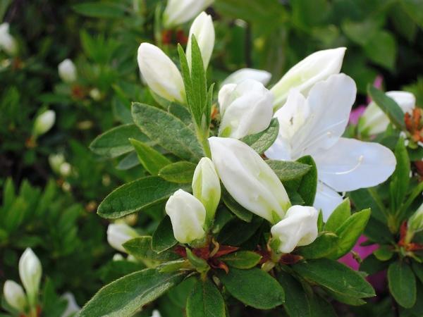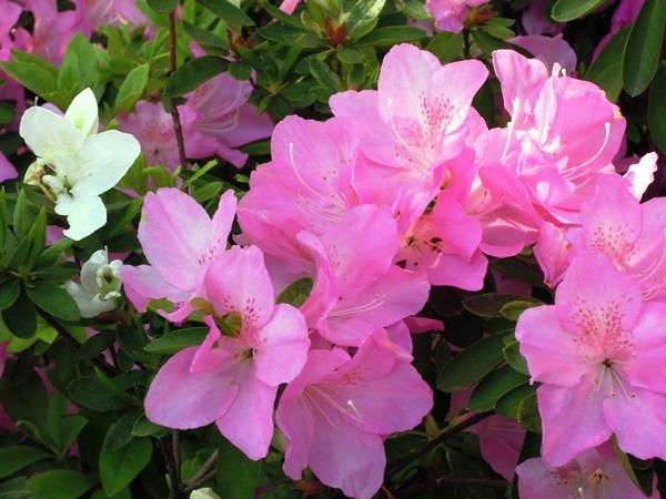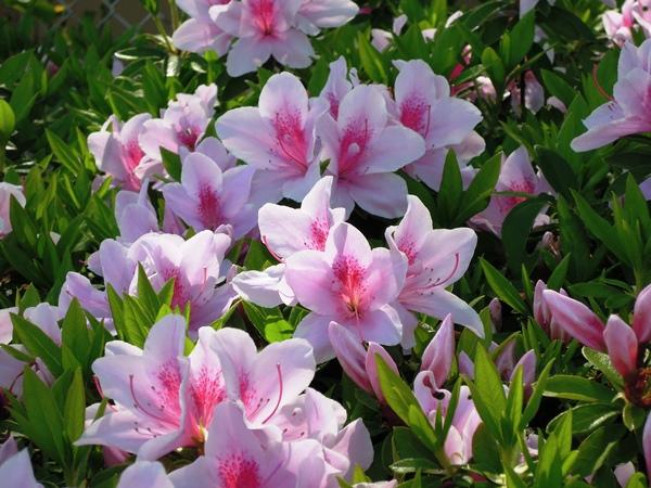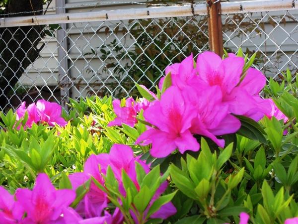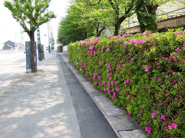「三重高通り」に沿ったつつじが花を咲かせました。赤から白まで4色のグラデーションでできた生垣が間もなく出現します。