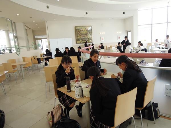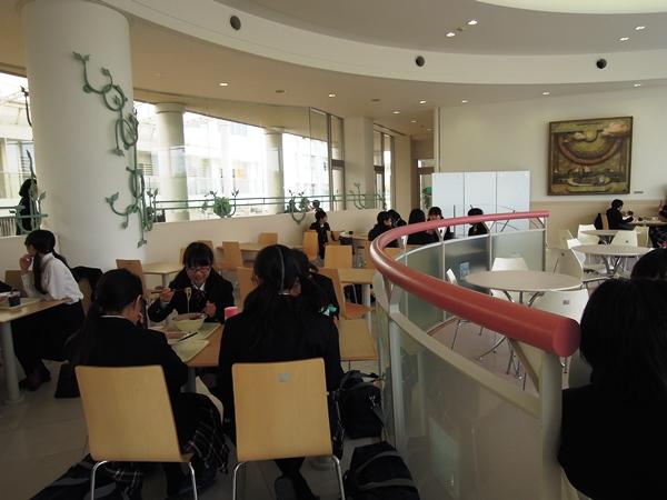 土曜日は中学生も校内カフェテリア『ディスコランテ』を利用することができます。授業のある今日4月26日は1年生にとってはその最初の機会でした。外のテラスではテーブルを囲んでお弁当を食べる姿もいつもより多く見られました。