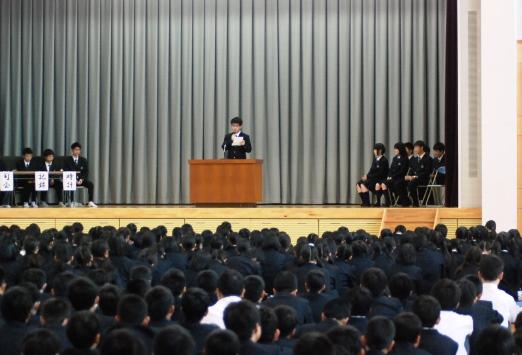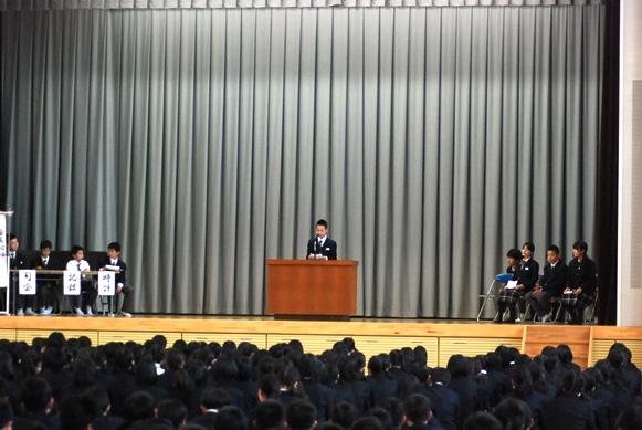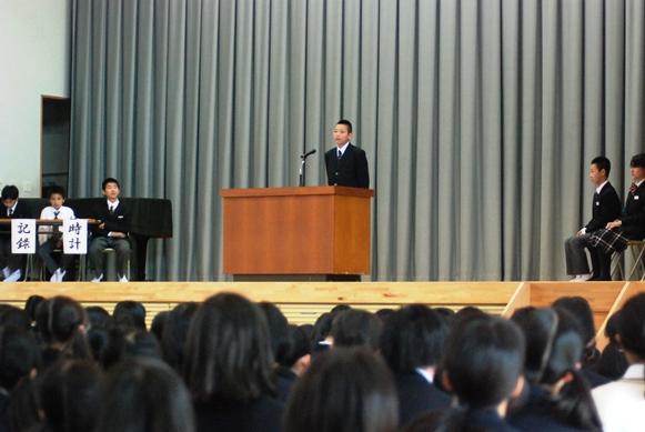 ![]() 1年生の候補者は地声で堂々と演説 |