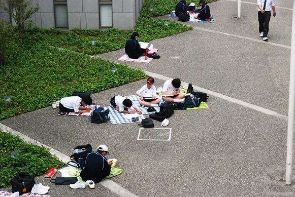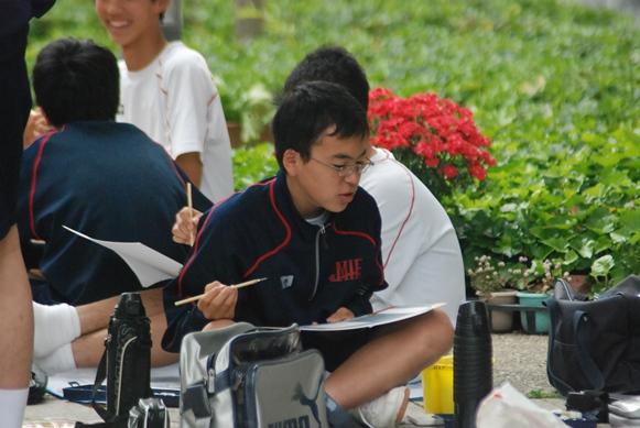 5月20日(火)、全校生徒による恒例の写生大会が開かれました。曇りがちで太陽の光には恵まれませんでしたが、そよ風も吹き快適な気候の中、広大なキャンパスに散らばり、一日かけて作品作りに取り組みました。今年のテーマは『いつもの学校から風景を切り取る』。見慣れた光景の中から思いがけない構図や色彩の発見が期待されます。