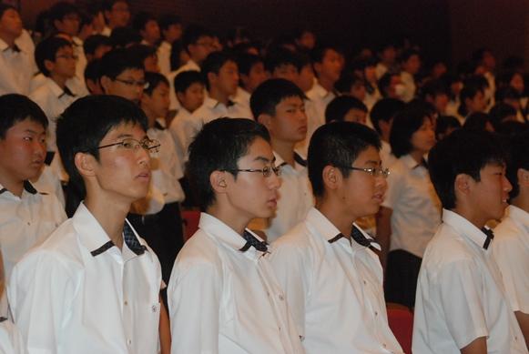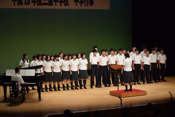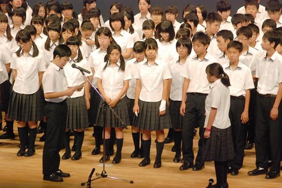 ![]() 3年生全員が舞台に上り、全員で校歌を歌いました |