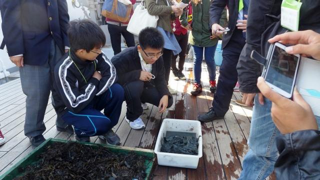 三重大学の調査船「勢水丸」に乗り、海底の生物やヘドロの観察を行いました。また、海の博物館や国崎の海女小屋では、海女が昔から採る量を制限していたことなどを知りました。