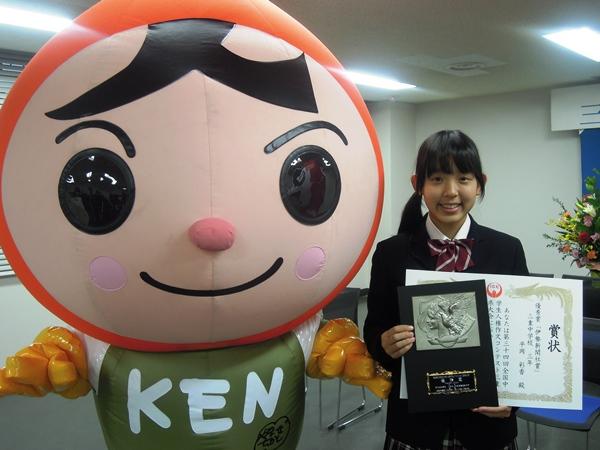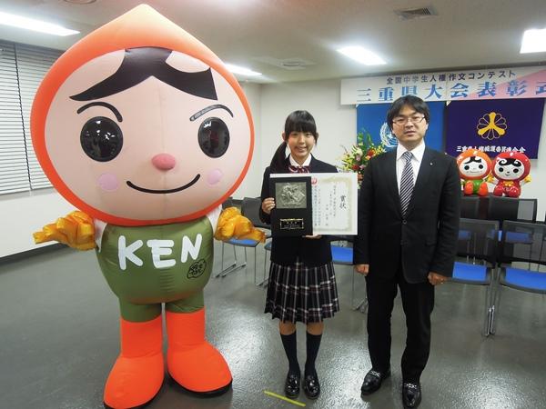 「全国中学生人権作文コンテスト 三重県大会」で、3年生の平岡彩香さんの作品「共に生きるということ」が優秀賞(伊勢新聞社賞)に選ばれ、12月5日(金)に授賞式が行われました。
