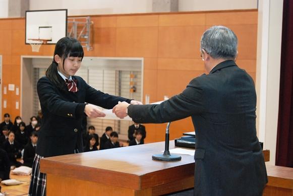 12月22日(月)、第2学期終業式と恒例の生徒会によるクリスマスミニコンサートが行われました。 終業式ではスポーツ・文化で活躍した生徒の伝達表彰が行われましたが、今回は特に文化面で目覚ましい活躍がありました。 また校長から過日三重中高が受賞した「第3回みえ環境大賞」の披露がありました。