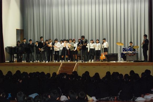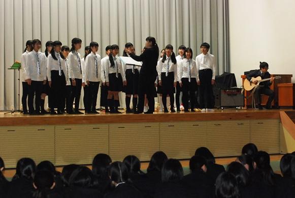 ![]() 音楽部による合唱-教員のギター演奏も交えて |