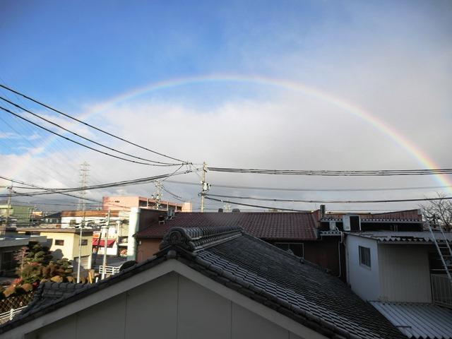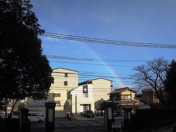 1月23日(金)冬には珍しく学校の間近で虹が見えました。それもきれいな弧の端から端までくっきりと。2階の職員室で目ざとく見つけた教員が急いでブラインドを開けて写真に収めました。大学入試を控えた6年生にいい知らせをもたらしてくれそうな気がしました。