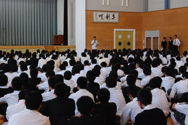5月8日(金)に松阪市中学校総合体育大会に出場するクラブの壮行会が行われました。新しいメンバーでの最初の試合となるクラブも多いようで、試合に対する意気込みを代表生徒が発表しました。