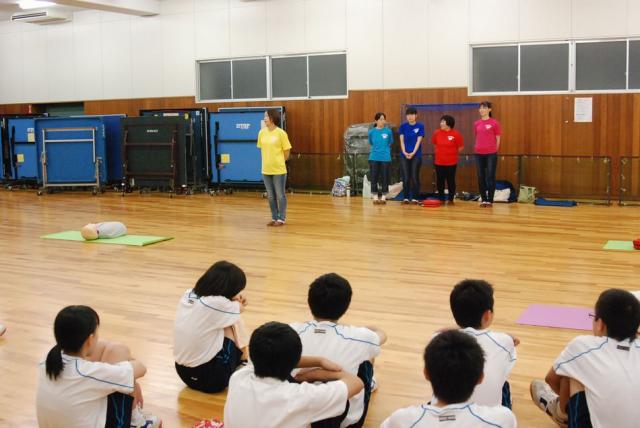 2年生は7月22日(水)~24日(金)に長野県で夏季合宿を行い、ハイキングや登山を行いますので、毎年この時期に講習会を行っています。また、この講習会を参考に夏休みの宿題として『救急医療を考えるポスター』コンクールにも応募をする予定です。